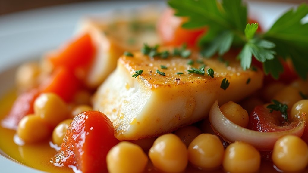 - Simmer the Dish: Reduce the heat to low and let it simmer for about 20-25 minutes. The cod should be fully cooked and flaky, while the chickpeas should absorb the flavors of the dish. Check for seasoning and add salt if necessary.