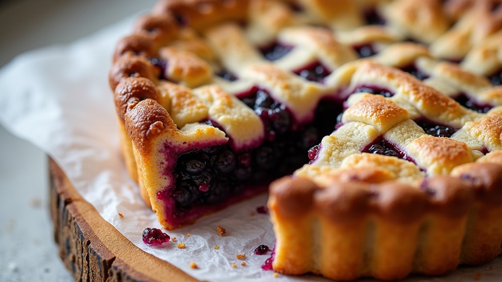 For the best flavor, use fresh blueberries if they’re in season, as they’ve a more vibrant taste compared to frozen. If using frozen blueberries, don’t thaw them before adding to the filling; they’ll release moisture during baking, contributing to a juicy pie.