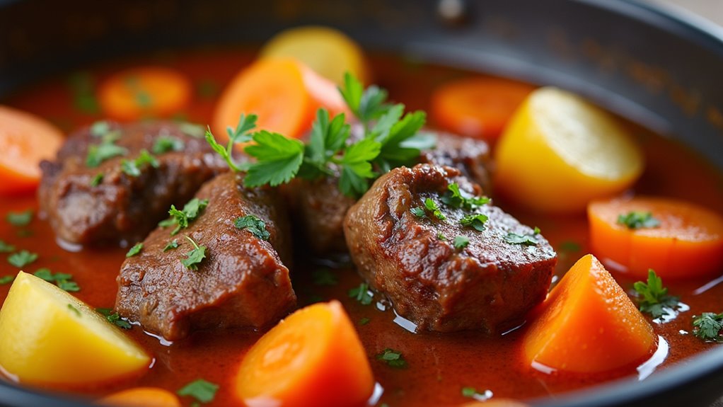 To prepare Cozido À Portuguesa, you’ll need to gather a selection of meats, such as beef, pork, and chicken, along with an assortment of vegetables like carrots, potatoes, and cabbage. The dish is typically cooked in a single pot, allowing all the flavors to meld beautifully.