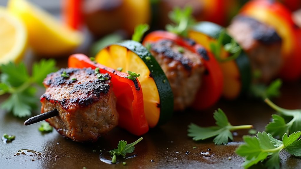 - Serve: Once cooked, remove the skewers from the grill and let them rest for a few minutes. Garnish with fresh chopped parsley and serve with lemon wedges on the side for squeezing over the skewers.