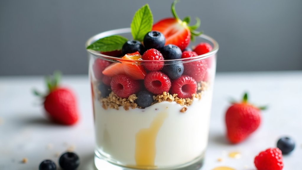 - Repeat the Layers: Continue adding layers until your glasses or bowls are filled. Aim for at least two or three layers of yogurt, berries, honey, and granola. Finish with a final layer of yogurt on top, a handful of berries, and a drizzle of honey.