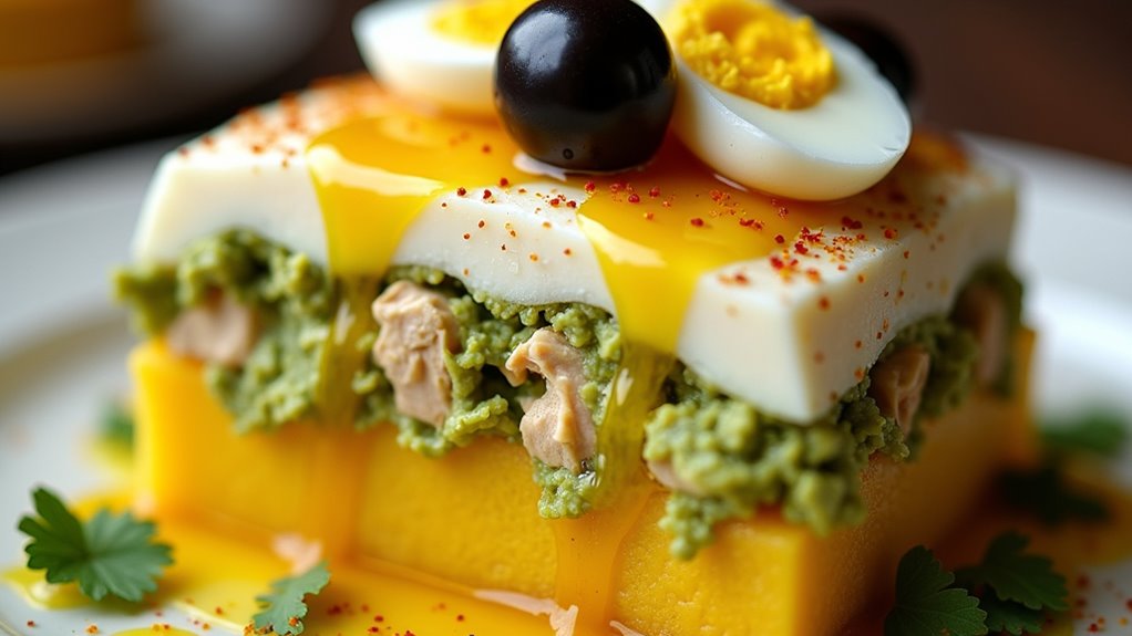 Traditionally, Causa Rellena is served cold and layered with various fillings, making it an excellent choice for a revitalizing appetizer or light main course.