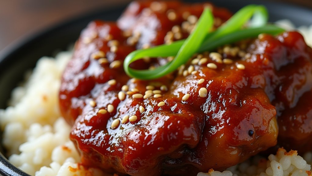 Additionally, for a unique touch, you can serve the pork knuckle with a side of pickled vegetables or a spicy dipping sauce to enhance the overall dining experience. Always let the pork rest after cooking to retain its juices and guarantee a moist, flavorful bite.