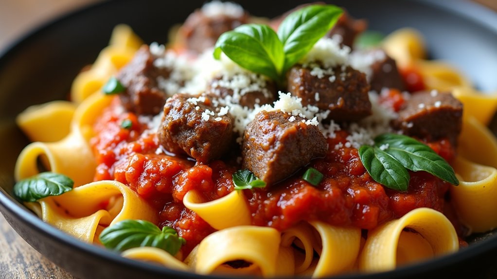- Serve: Toss the cooked pappardelle with the ragu until well coated. Serve hot, garnished with fresh basil, parsley, and a generous sprinkle of grated parmesan cheese.