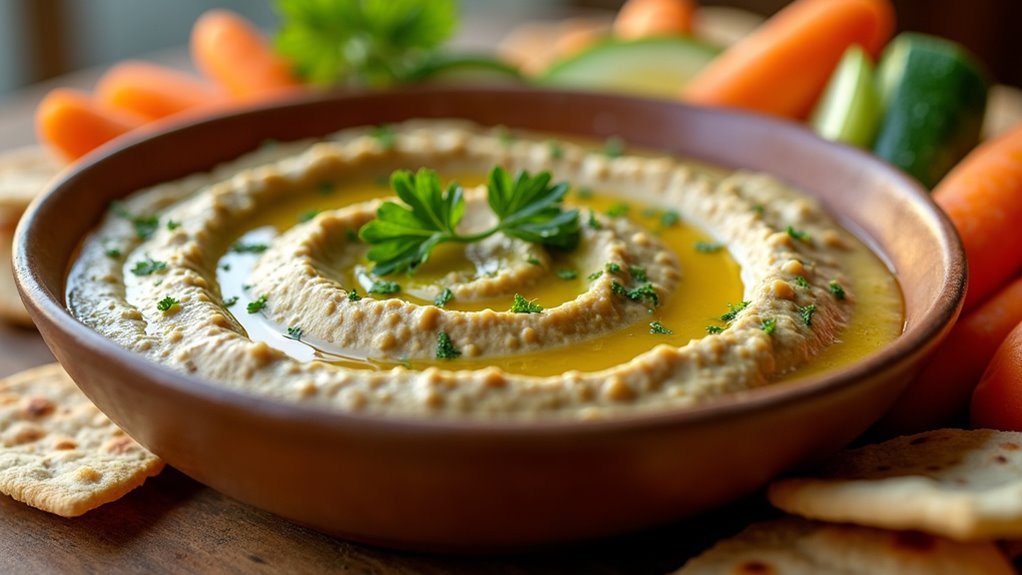 Enjoy your homemade hummus with various dipping options for a delicious Mediterranean experience!